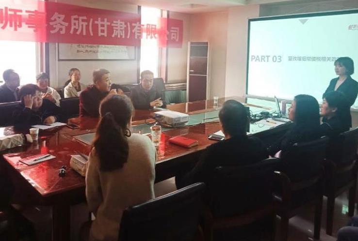 2020年10月21日上午9時,我事務(wù)所對蘭州富潤房地產(chǎn)開發(fā)有限公司員工進(jìn)行房地產(chǎn)企業(yè)稅務(wù)管控方面的專業(yè)培訓(xùn),此次培訓(xùn)活動在蘭州富潤房地產(chǎn)開發(fā)有限公司會議室開展,共有公司員工20余人參加此次培訓(xùn)。